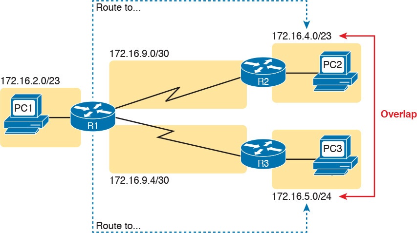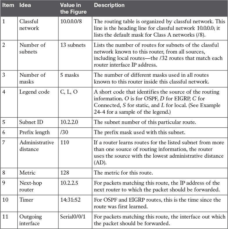 Note that the section “IP Forwarding by Matching the Most Specific Route” in Chapter 24, “Troubleshooting IPv4 Routing,” gets into this topic in more detail.