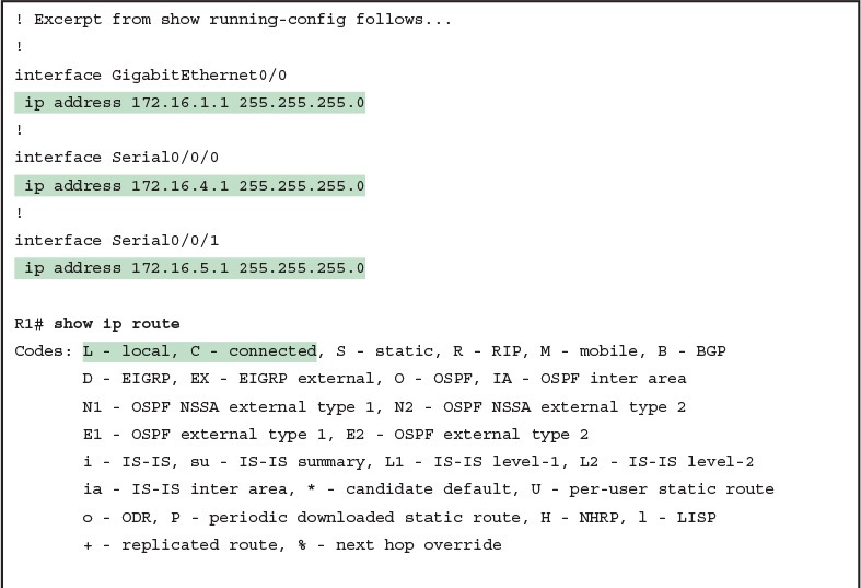 Earlier, this chapter defined a host route as a route for a single host address, as noted with the IP address and a /32 mask. The earlier examples focused on the local routes added as a result of the ip address command; those routes are all host routes, with a /32 mask.